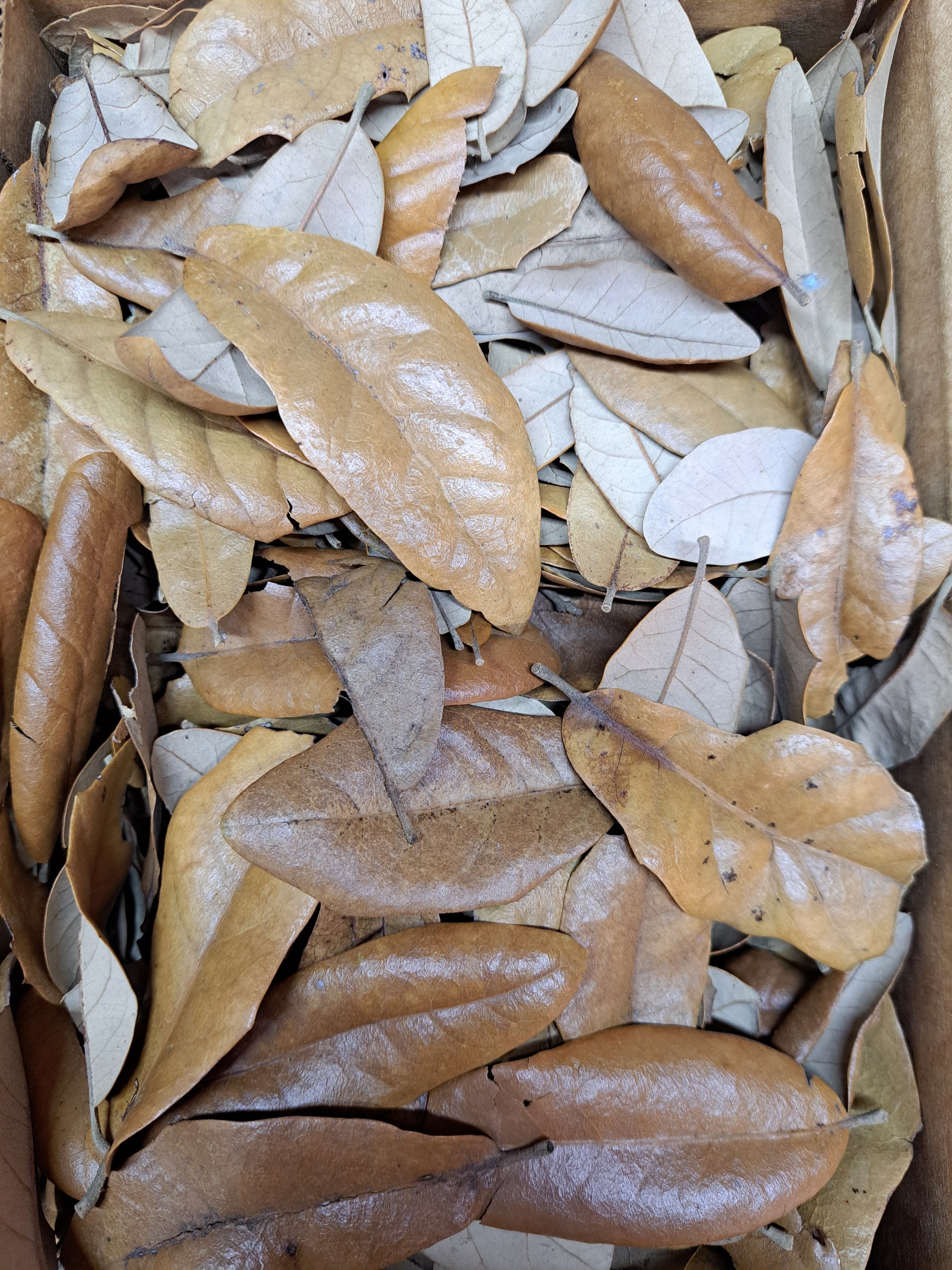 mixed oak leaf litter, primarily live oak with some other similar oak species mixed in. very minimal sticks or other debris.